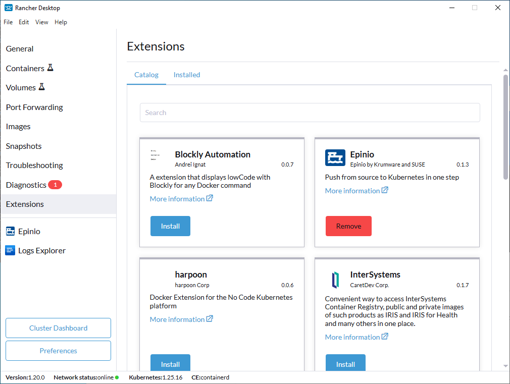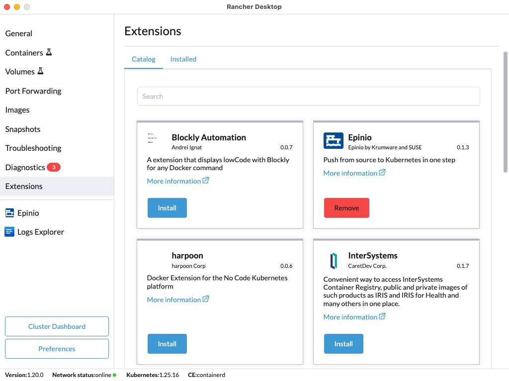 Installing and Uninstalling Rancher Desktop Extensions