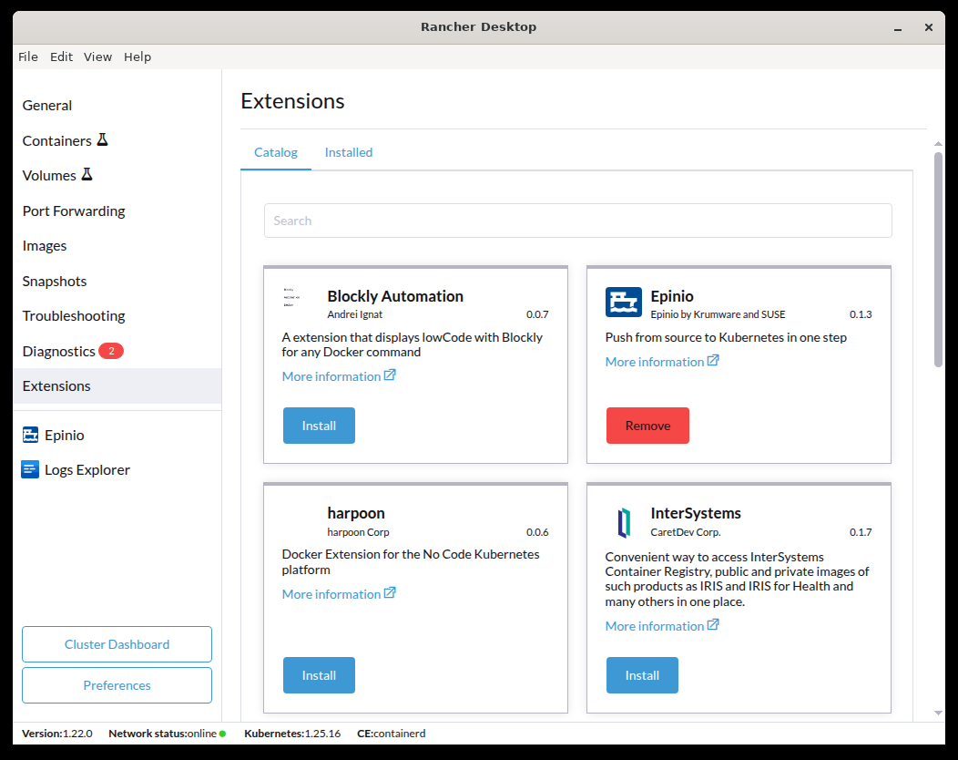 Installing and Uninstalling Rancher Desktop Extensions
